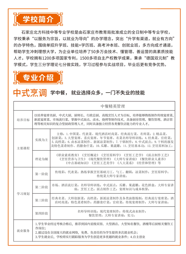 沧州初中毕业生学西点专业、厨师专业:石家庄北方科技中专学校招生报名了