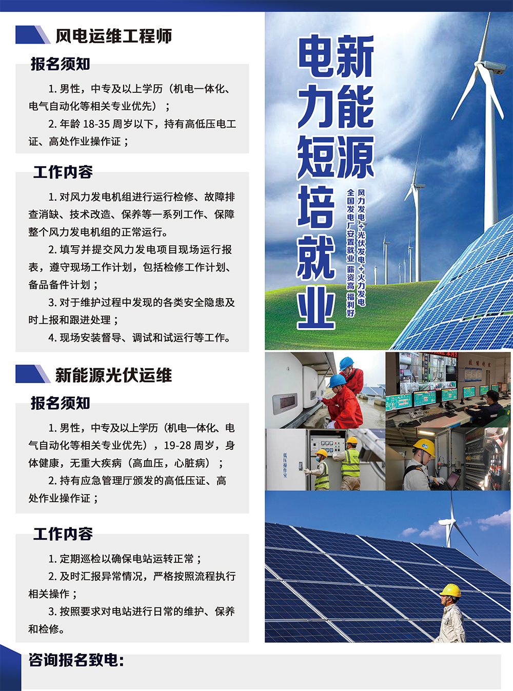 沧州高中毕业生、大专毕业生:风电运维工程师、新能源光伏运维工程师火热报名中