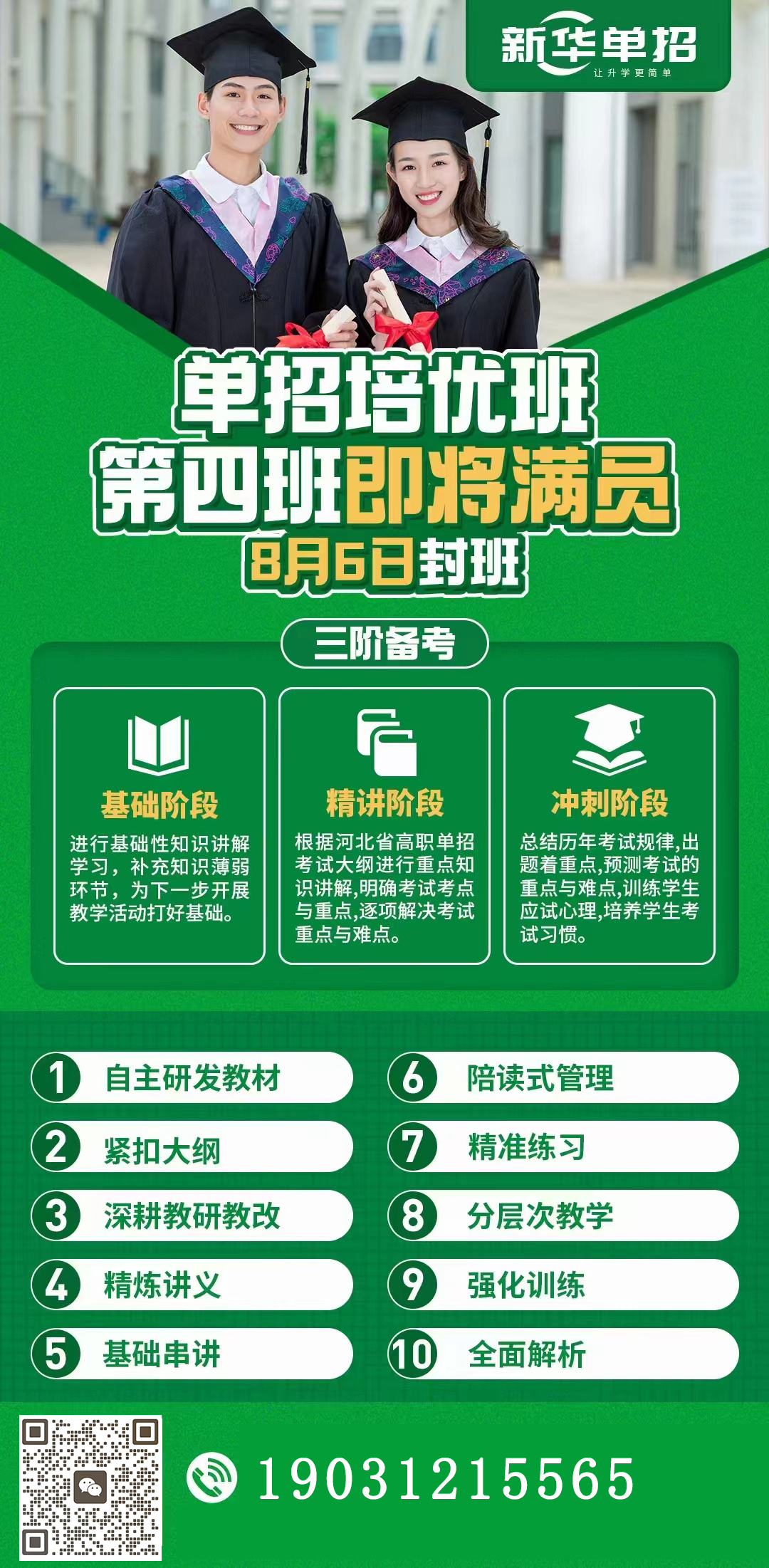 上一篇:沧州高三学生找单招培训:石家庄2024高职单招集训班招生报名中