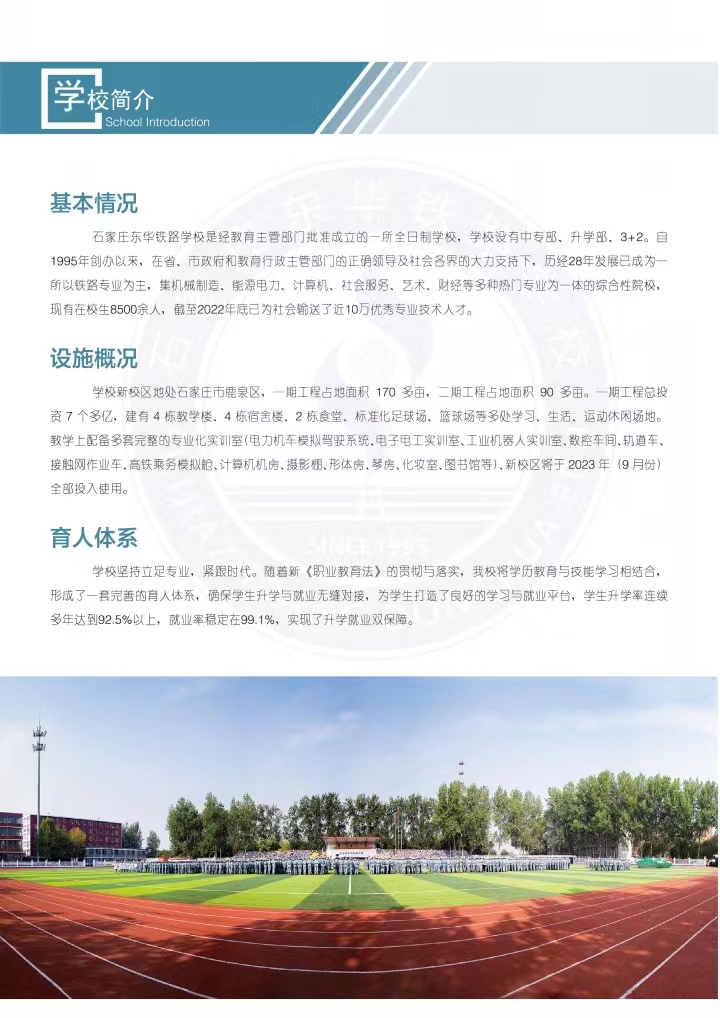 沧州应往届初中毕业生:石家庄东华铁路学校2023招生简章