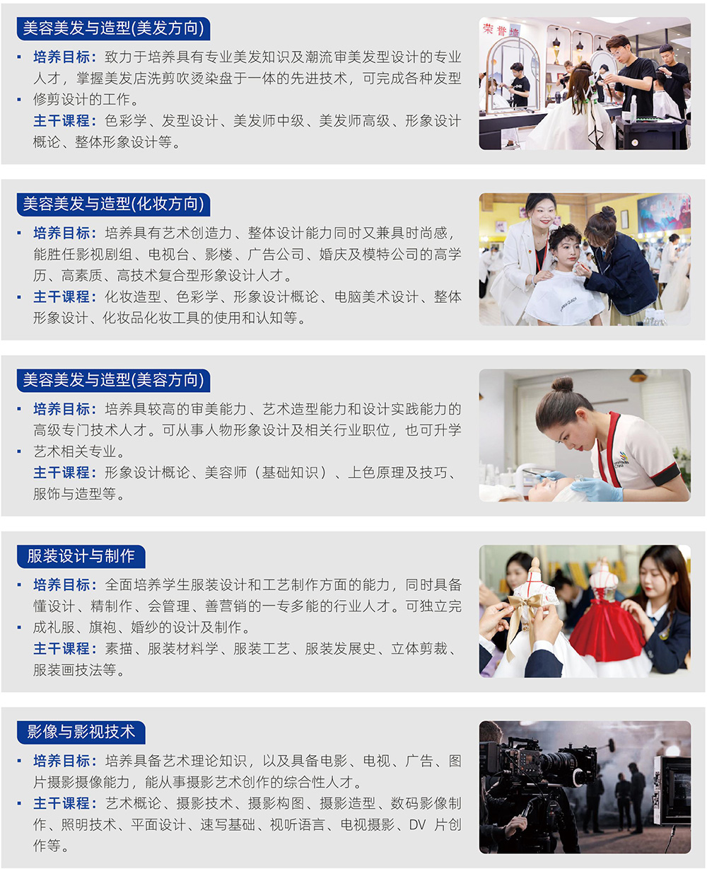 石家庄花都形象艺术学校(石家庄市花都技工学校)是由上级行政主管部门批准设立的职业教育全日制学历学校,自上个世纪90年代至今已有近30年历史,隶属于花都教育集团「下设中专升学中华校区、技工阿里山校区、艺术设计学院(二级学院)红旗校区」。学校坚持以立德树人、德技并修为宗旨。坚持升学、就业两手抓,以满足学生职业需求为导向,大力推进“提质培优、质量立校、专业塑校、管理强校”的战略。秉承“尚德、至善、存真、尚美”的校训,坚持长短结合,中高职衔接、对口升学、国际交流,以创建品牌特色学校为先导,实现高职带动中职、以长带短,形成多层次、多专业、多路径的办学模式。